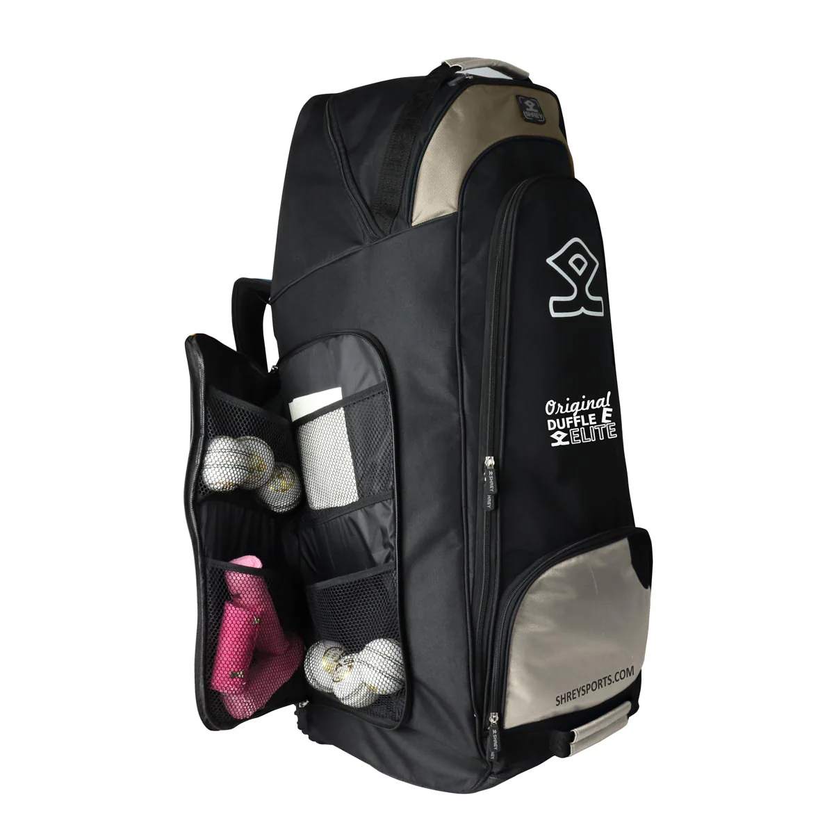 Introducing the Shrey Elite Duffle Wheelie Bag – a perfect blend of efficiency and style, designed to provide maximum storage capacity.